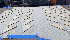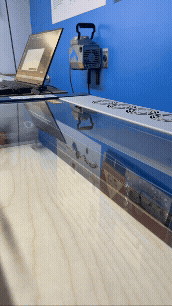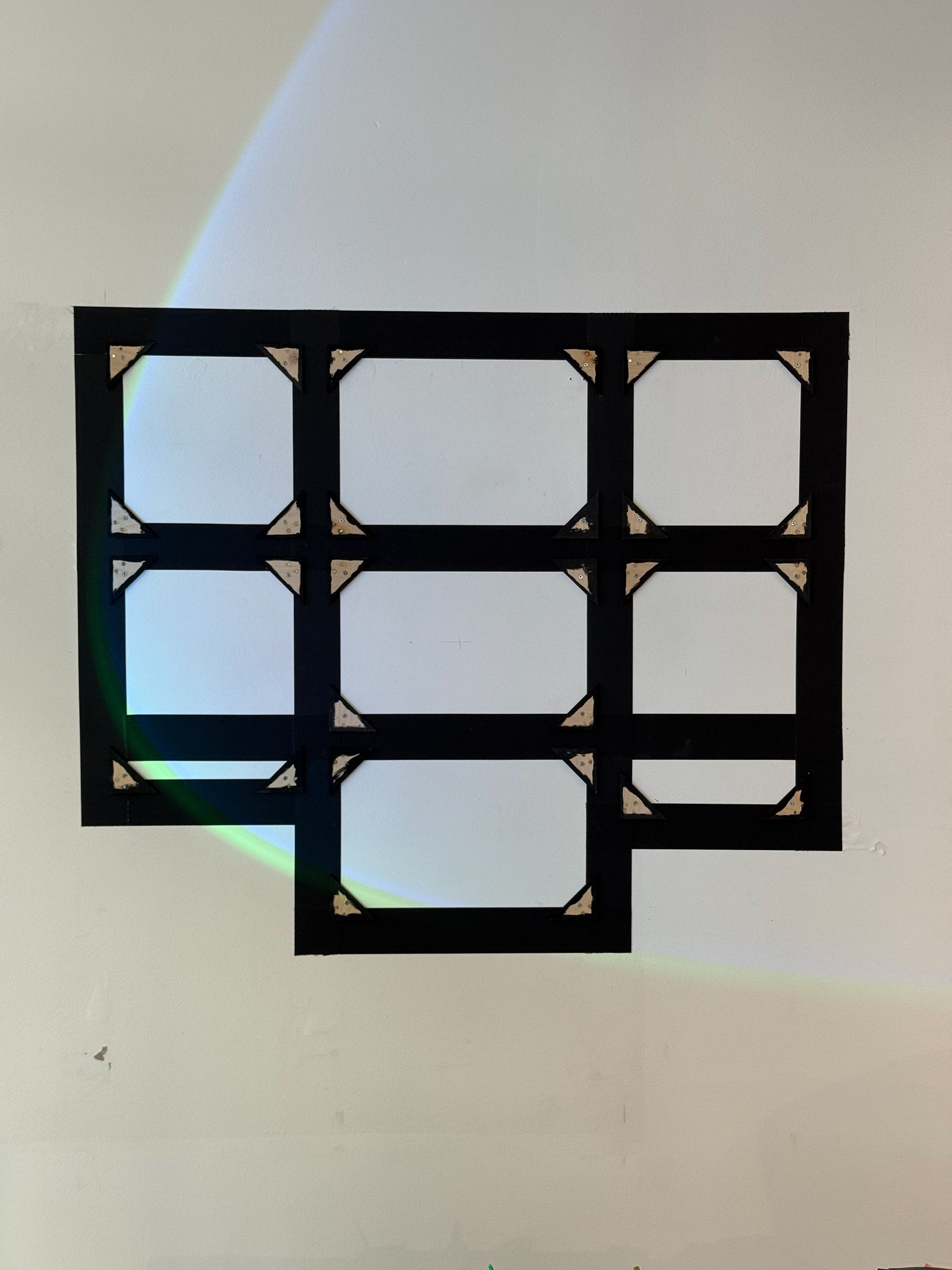 The pieces were mounted and lit after a process of Iterating the layout, designing, laser cutting, and assembling custom magnetic frames.