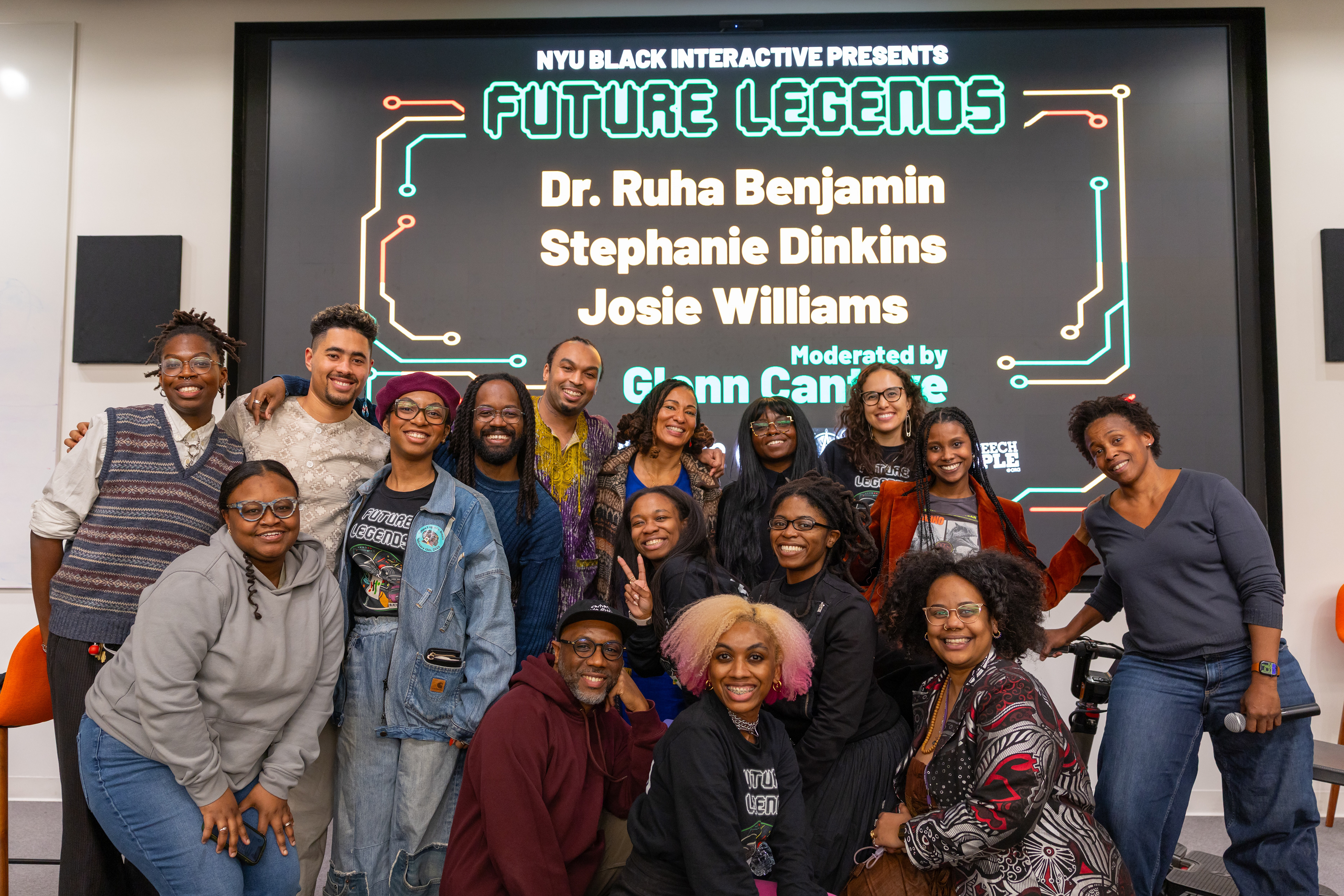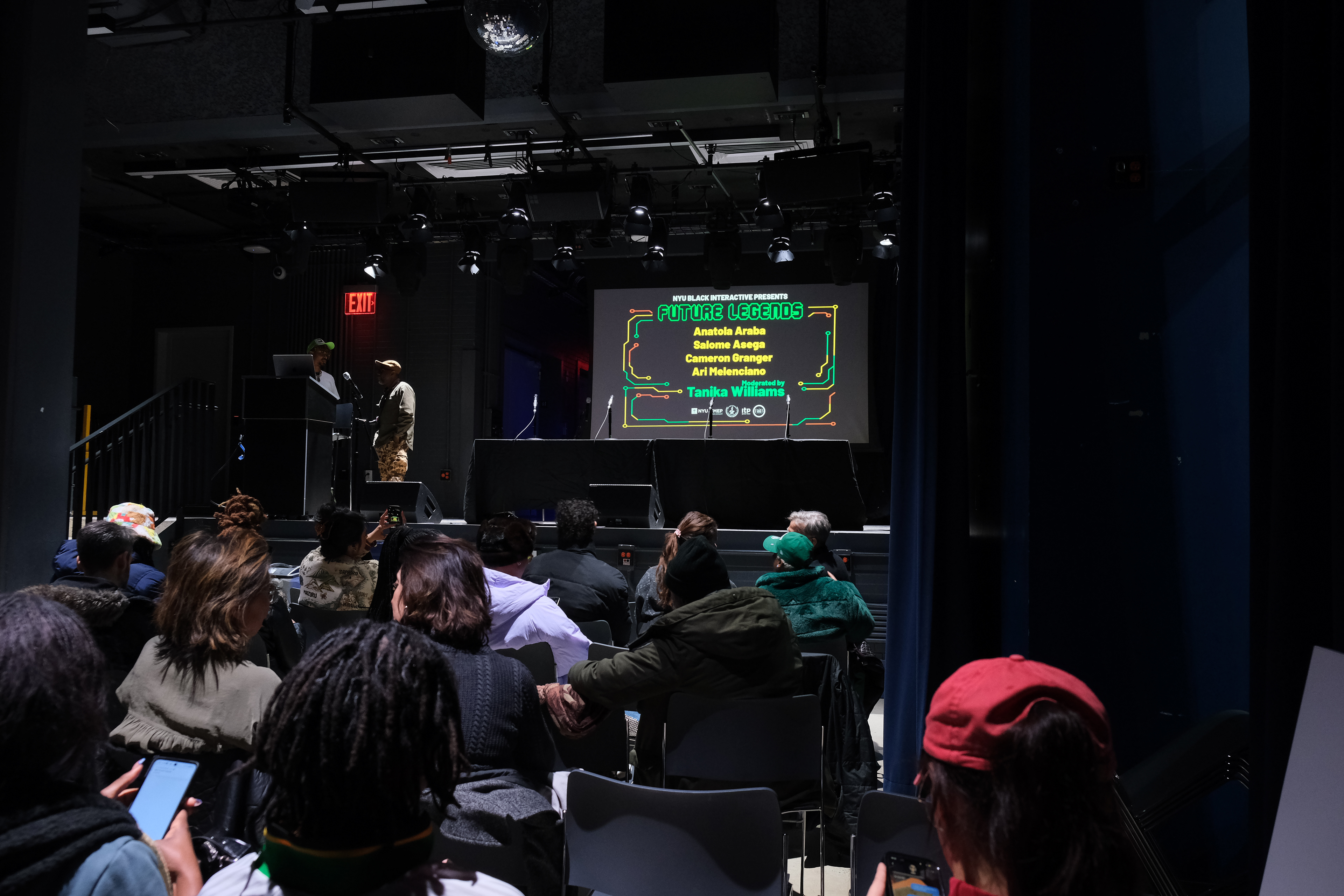 Future Legends was designed to pull the black art & tech community from around New York area into one room. We brought together students, alumni, faculty, and professionals at the intersection of Blackness and emerging media. Some highlight speakers include: Ari Melenciano, Salome Asega, Dr. Ruha Benjamin, Junglepussy, Stephanie Dinkins, and Anatola Araba.