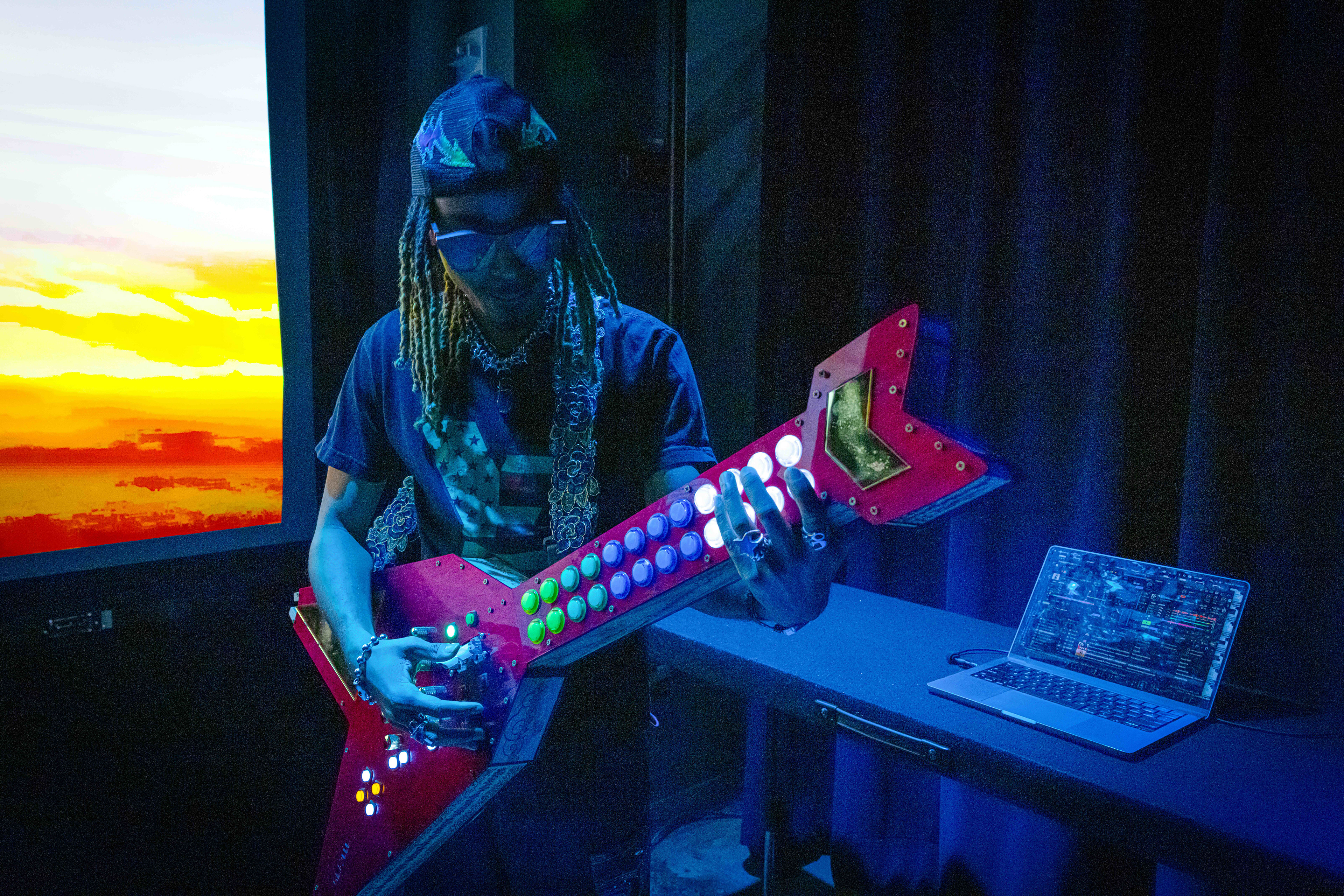 NIGHTSKIN is a visual reclamation, subverting a potentially derogatory term into a display of radiance. Through a synthesis of photography and custom carpentry, the series captures Black creators in flowtion. The use of LIGHT painting illuminates the inherent iridescence of Blackness, tracing the physical evidence of creativity in motion.